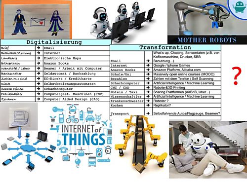 Zusammen mit dem Druck immer schneller zu handeln, eröffnen sich nun völlig neue - bisher undenkbare - Möglichkeiten. Das führt dazu, dass sich Geschäftsfelder / Berufe / Lebensrealitäten massgebend verändert. Was wiederum zu einer Verunsicherung bei den Menschen führt. Digitale Transformation ist deshalb mehr als nur eine technische Veränderung, es ist ein grosser Schritt für die gesamte Menschheit.